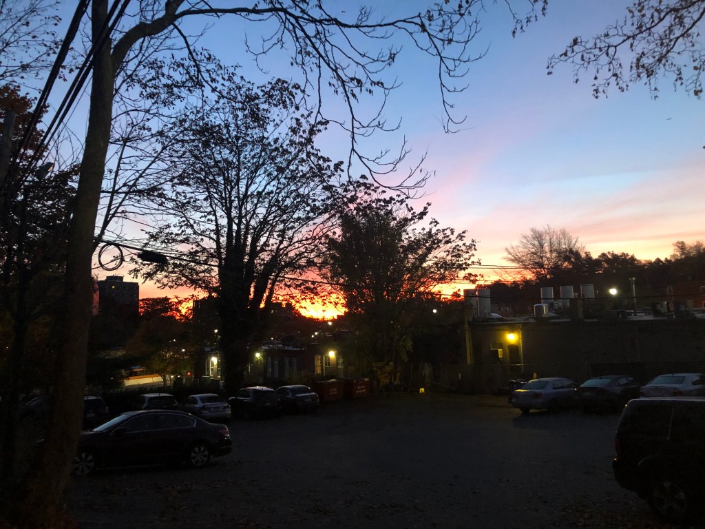 I spent a lot of time in the car today, and that’s where I found most of my quiet. Here’s the parking lot at sunrise.