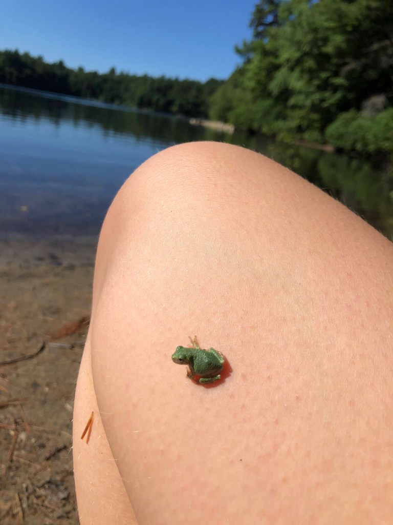 My first visit to Walden Pond, where I communed with the spirit of Henry David Thoreau, took a spontaneous swim, chatted with fellow hikers, and made friends with the little frog pictured above
